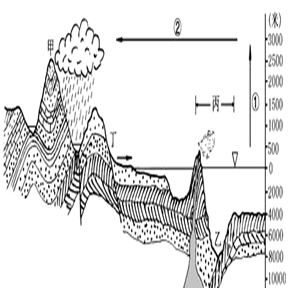 点评:本题考点较多,但难度不大,学生只要能从图示的海陆间循环判断水循环的主要环节;岩层的变形和变位判断地质构造,海陆位置判断板块位置和对地质作用的影响等内容。