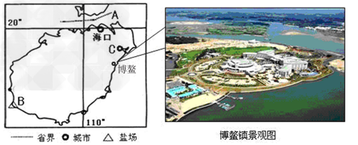 材料四:下图为海南岛区域简图和博鳌镇景观图。
