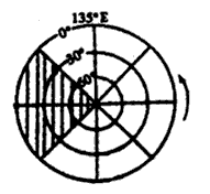 2、单选题 下图斜线部分表示7月7日,非斜线部分表示7月8日,两条相邻经线之间的间隔相等,箭头表示地球自转方向,此时北京时间是