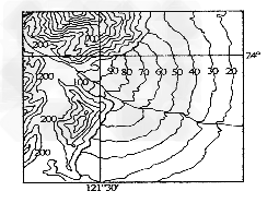 3、单选题 下图为我国东部某地区等高线分布图,完成1 ~2题。