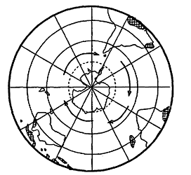 3、单选题 读以南极点为中心的半球图(如图),图中阴影部分表示地球上某种资源的分布,箭头表示洋流。根据图中提供信息,回答题。
