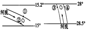 试题解析:考查地转偏向力,南左北右,赤道不偏,根据经纬度判断,右图在北半球,左图在南半球,根据地转偏向力,②、③更容易侵蚀,最终小岛连接①、④堤岸。