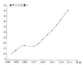 A.西南部交通通达度高 B.东北部风景名胜区 C.西南部知名度高 D.东北部工业发达 2、综合题 (10分)读我国城市化进程(1945~2010年)曲线圈,回答下列问题。 3、单选题 目前有些城市对汽车实行分类牌照进入市区,其目的是 4、单选题 读右图,回答9-10题: |