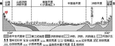 1.根据图中信息判断,该盆地为2.图中甲山地北坡降水较多,其原因是3.关于A处河流的叙述正确的是