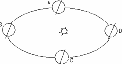 A.①③两地均地方时24时日落 B.①③两地正午太阳高度相等 C.①③两地季节相同 D.①③两地盛行风向相同 参考答案:小题1:B?? 本题解析:试题分析:小题1:读图,甲图北极圈出现极夜现象,是冬至日。乙图南极圈出现极夜现象,是夏至日,所以两地日期大约相隔6个月,B对。A、C、D错。 本题难度:一般 5、单选题  左图中阴影部分表示黑夜。读图,回答问题。 参考答案:1. D 本题解析:本题考查地球运动和光照图的综合分析。 本题难度:困难  |