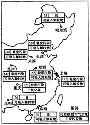 3、多选题 下图是2001年3月6日我国部分城市空气质量状况图。读图,回答1—4题。