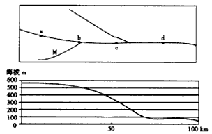 5、单选题 下图为某流域河流分布图及其干流河床对应的剖面图,据图回答1—3题。