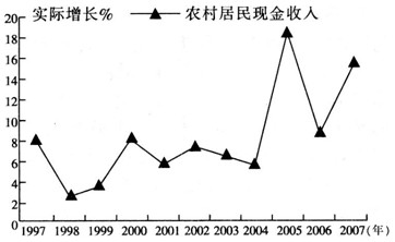 (3)根据材料三可知农村居民现金收入快速增长,2005年达到高峰,主要原因是________________________________。