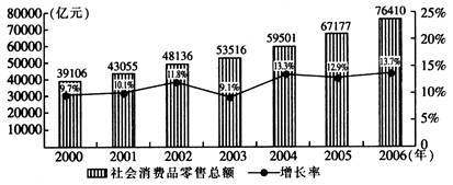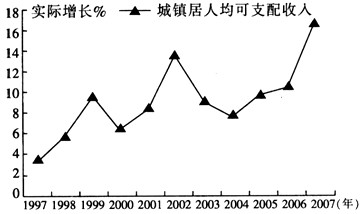 材料四:我国城镇居民人均可支配收入变动趋势(2000~2006年)