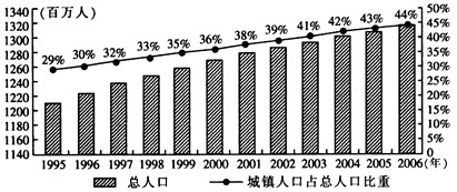 材料一:我国总人口和城镇人 口占总人口比重示意图