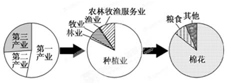 1、单选题  下图是我国某地区产业结构示意图,读图,完成下列各题。