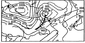 (1)天气系统A的名称是__________(2分);该天气系统过境时,北京的天气特征________。(2分)