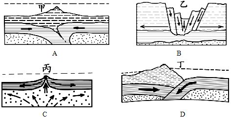 (1)内力作用的能量主要来自地球内部的热能,表现为地壳运动、岩浆活动、变质作用等,它使地表形态变得高低起伏。图中内力作用的表现有地壳运动、板块运动,形成断层带或深海沟;岩浆活动具体表现为火山或地热的分布。