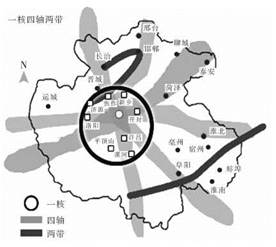 单选题 2012年12月2日,国家发改委正式发布了 《中原经济区规划》。规划提出要加快形成“一核四轴两带”放射状、网络化发展格局,其中,四轴是 沿陇海发展轴、沿京广发展轴、沿济(南)郑(州)渝 (重庆)发展轴、沿太(原)郑(州)合(肥)发展轴。据此回答下面各题。