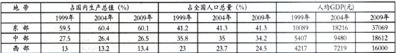 1.关于三个经济地带2000~2009年经济发展的论述正确的是2.导致我国东、中、西部经济发展差距的社会经济原因是