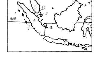 (3)A为苏门答腊岛,赤道从该岛经过,应该为热带雨林气候,该气候由于终年受赤道低气压带控制,终年高温多雨。