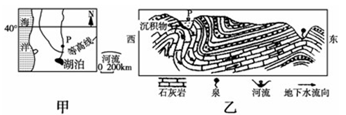 2、单选题 图中甲图为某区域示意图,乙图反映甲图中P地河谷及其附近区域的地质剖面,P地河谷剖面的形成与地转偏向力的作用有关。读图回答6~8题。