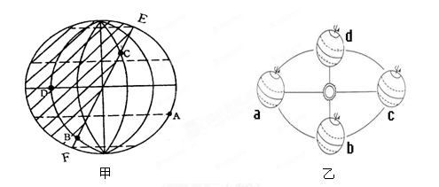 (2)甲图为北半球?????????(节气)的太阳光照图,EF为__________(晨线或昬线)