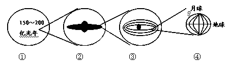 【小题4】下图中①、②、③、④四幅图分别表示不同级别的天体系统,名称依次是( )