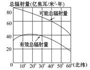 【小题1】根据图示赤道地区的可能总辐射量与有效总辐射量差最大,反映云量多,大气对太阳辐射的削弱作用强。