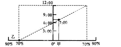 2、单选题 右图为某日某经线上日出时刻随纬度的变化示意图,读图回答下列小题。
