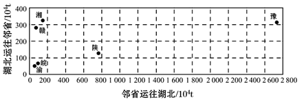 1、单选题 该图显示某年湖北省与相邻省级行政区往来货物的铁路运输量差异。读图,回答问题。