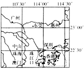 2、综合题 读下图珠江三角洲部分城市位置图,回答问题。