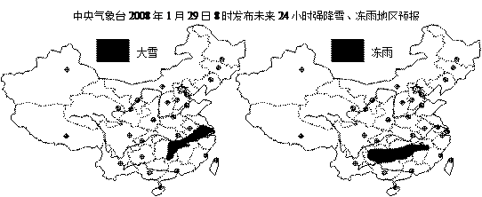 (3)发生在湖南省内的雪灾,可直接影响我国南北向________、_______铁路线、东西向________、_______等铁路线、公路线的顺利通行,给春运带来极大压力。为此,中共中央政治局常委、国务院总理温家宝两赴湖南,考察抗冰救灾工作。