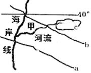 4、综合题 读图,回答下列问题 (7分) 5、单选题 下图中的40°线为纬线,a、b、c为等温线,并且甲地常年受西风带的控制。读图回答下列各题。 |