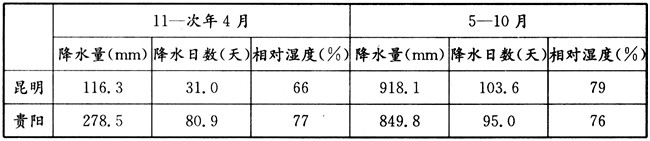 5、综合题 根据昆明和贵阳的气候资料,回答下列问题。