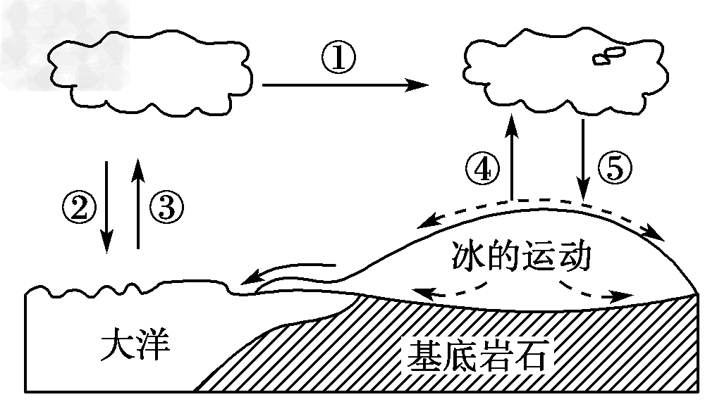2、单选题 2009年,在南极内陆冰盖的最高点(海拔4083米)建成我国第一个南极内陆科学考察站——昆仑站。下图为南极地区自然物质运动示意图,据图,回答1~2题。