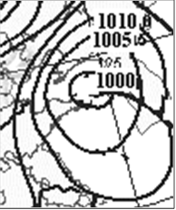 读下左图“2007年3月3日(农历正月十四)渤海湾风暴潮紧急警报(红色)图”和右图该日“天气形势图”,回答下列问题。(9分)