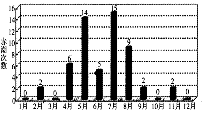 (1)根据材料说明2011年我国赤潮的时空分布特点。(6分)