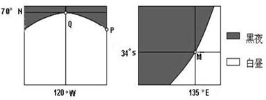 (4)该日,Q、P两地的夜长大小关系是 ,M地昼长为 小时。 (4分)