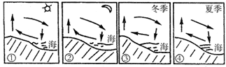 【小题1】①带在赤道附近,为赤道低压带。图中,整个赤道低压带向北移到赤道以北,说明太阳直射点移动到了比较偏北的位置。所以,图示日期为北半球的夏季。