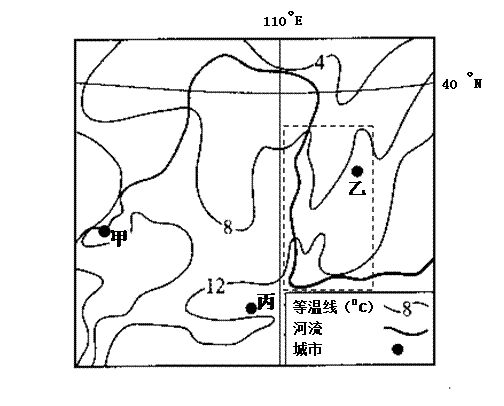 4、综合题 图1为“甲、乙两地地理位置示意图”。图2为“甲、乙两地年内气温与降水量变化图”。读图回答下列问题。