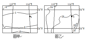 C.一般情况下图甲所示月份h地农作物受寒潮影响最严重