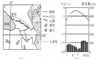 2、单选题 2014年冬奥会计划于当年的2月7日至23日在俄罗斯黑海之滨的索契举行。读“索契区域示意图”(左图)和“索契气候资料图”(右图),回答下列问题。
