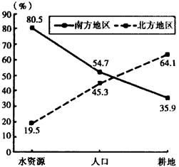 2、单选题 下图为我国南北方水资源、人口及耕地分布对照图,下列说法与图中内容相符的是