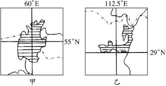 本题解析:根据两图所处的地理位置和湿地的轮廓判定甲处湿地是咸海,乙处是位于我国长江中下游地区的洞庭湖。造成两处湿地面积缩小的主要原因是人类在此开展大规模的农业活动。围湖造田造成乙湖面积缩小;大规模引水灌溉导致进入甲湖的河水量减少,随着咸海面积不断缩小,沙漠化和环境问题相继出现。