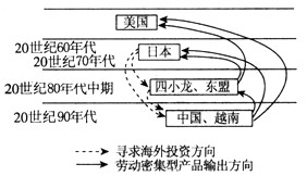 A.原料指向型 B.市场指向型 C.廉价劳动力指向型 D.技术指向型 参考答案:小题1:C???? 本题解析:本题考查资料分析运用能力(工业生产)。小题1:从图中可以看出,1998年到2006年台湾出口产品比重呈下降趋势的有鞋帽伞类和玩具运动品,这些产品的生产企业均属于劳动力导向型,说明其丧失的竞争优势主要是廉价劳动力,原因是随着经济的发展,劳动力的工资水平逐渐提高。小题2:台湾出口产品比重呈上升趋势的有金属制品和精密仪器,其中精密仪器上升的幅度最大,增长了一倍多,而精密仪器属于技术导向型企业,所以,反映其工业转向为技术导向型。 本题难度:一般 2、单选题 读图,完成1~2题。 参考答案:1、A 本题解析: 本题难度:一般 3、单选题 下图表示各因素对工业布局的影响状况,据图判断布局正确的企业是 参考答案:C 本题解析:试题分析:由图看出影响该工业的主导因素为劳动力,故应为劳动力指向型工业。所以本题选择C选项,家用电子产品装配厂。制糖厂是原料指向型;化工厂为动力指向型产业,该产业最优区位的选择应着重考虑动力因素。其次是考虑技术:所以也可以说化工厂为技术指向型产业, 啤酒厂属市场指向型。 本题难度:一般 4、单选题 从鞍钢到宝钢不同的区位因素,说明了? 参考答案:C 本题解析:本题考查影响工业区位的因素的发展变化。增强因素:交通运输、市场、劳动力的素质、技术因素、环境等;减弱因素:原料,劳动力的数量。从鞍钢到宝钢不同的区位因素,说明了市场对工业区位的影响逐渐加强,原料的地位逐渐下降。所以本题选择C选项。 本题难度:简单 5、单选题 第一阶段:兴建产业园吸引企业入住;第二阶段:原有产业逐步置换为高端产业,如下图。读图判断问题。 |