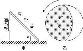 4、综合题 读下图,甲为太阳能热水器安装示意图,为提高太阳能利用率,在不同季节适当调整调节杆。乙为地球光照示意图,阴影部分表示黑夜。若乙图所示地处(40°N、80°E)某太阳能热水器一日内最可充分利用太阳能的时刻,请据此回答:(共14分)