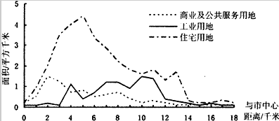 4、单选题 下图为“我国某城市主要功能用地面积空间变化图”。完成1—2题。