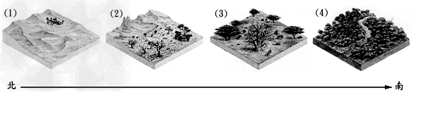 4、单选题 下图A、B、C依序分别是非洲某一地区的自然景观示意图、自然景观分布图及气候图。读图回答1-5题。????????????????????????????