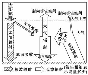 (1)图中箭头①表示大气对太阳辐射具有 作用。