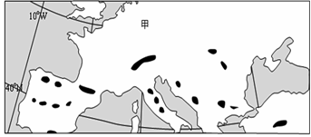 4、单选题 该图中黑色区域为某地理事物的分布图。读图回答问题