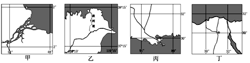 A.甲、乙、丙、丁四条大河均为外流河,虽然流向不同,但却注入相同的海洋
