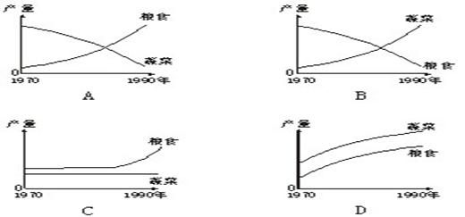 3、单选题  下图中,正确反映我国城郊农业变化大趋势的是
