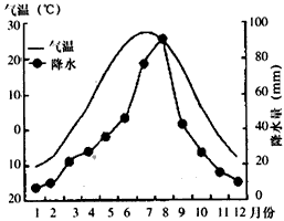 5、单选题 下图是我国自然地理分界线上某地的气候资料示意图,回答1—2题。