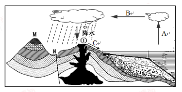 (3) 在图中C环节的参与下,①处岩石可转化为②处岩石,这种地质作用属于 (内、外)力作用。(2分)